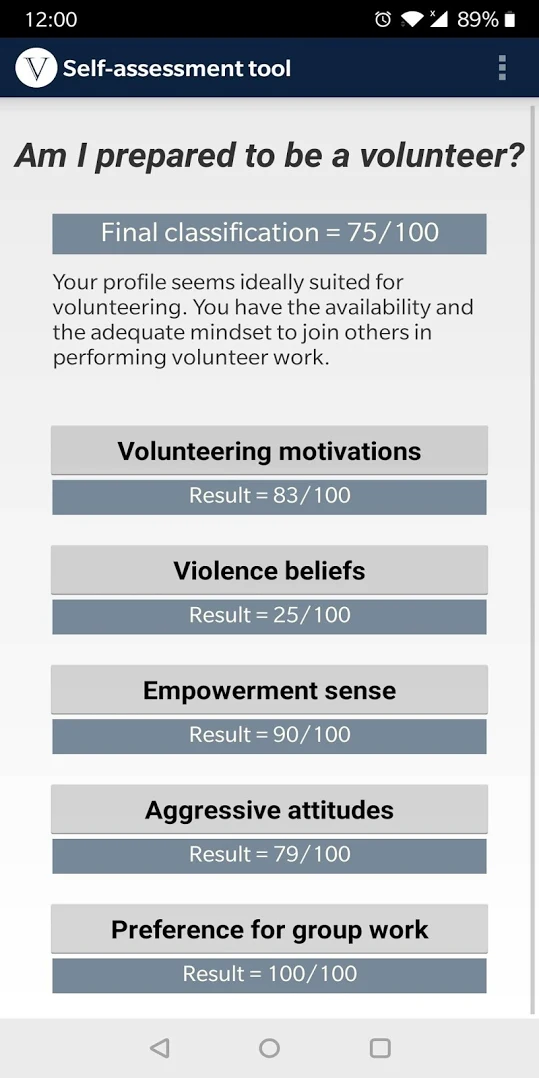 Volunteer self-assessment mobile app